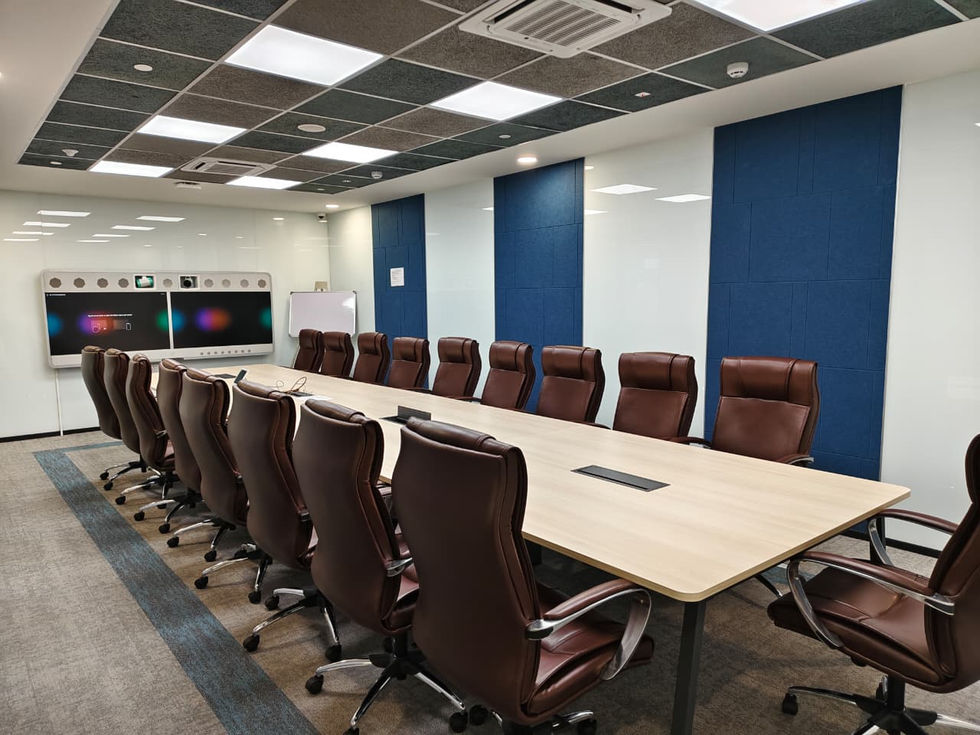 A composed, modern workspace defined by clean lines, warm wood accents, and structured neutrals. The design brings together open work floors, acoustically refined boardrooms, and focused collaboration zones to create an environment that feels efficient, balanced, and quietly sophisticated.